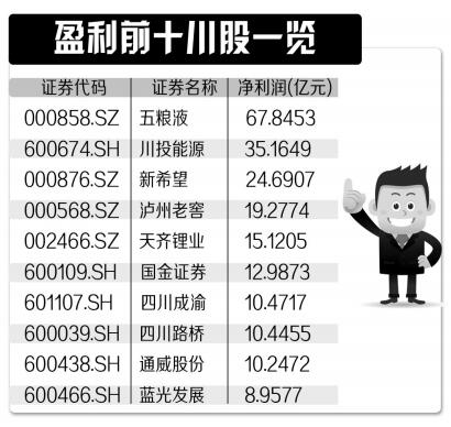 来自同花顺的数据显示,截至4月27日,两市已经有94家川企披露了2016年年报,其中83家企业盈利,12家亏损。