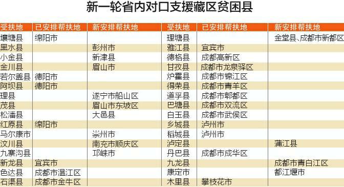四川省内对口帮扶藏区32个贫困县
