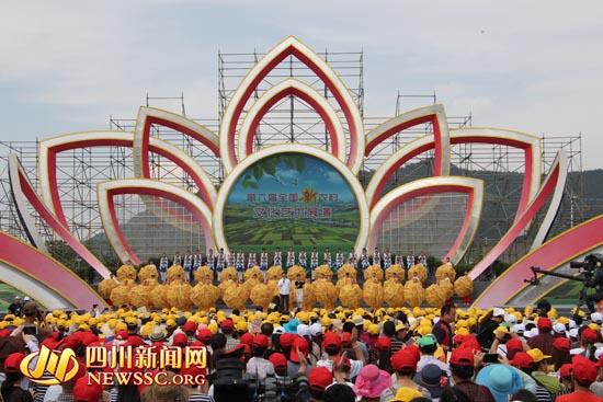 四川新闻网达州5月15日讯(熊冰芮 记者 余开洋 摄影报道)巴山起舞迎宾朋,渠水欢歌颂盛世。5月15日下午,凤凰山麓的莲花湖畔成了欢乐的海洋,第六届全国新农村文化艺术展演暨CCTV-7《乡村大世界》走进达州综艺演出在装扮一新的田园大舞台倾情上演。
