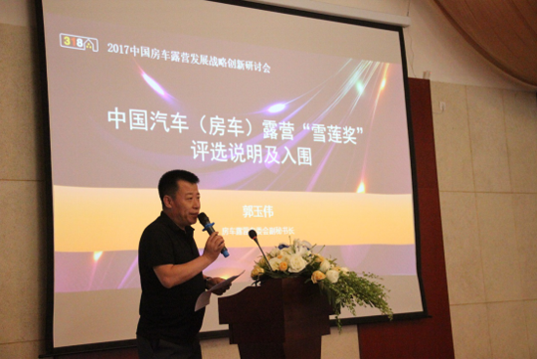 (房车露营专委会副秘书长郭玉伟) 房车露营专委会副秘书长郭玉伟对《中国汽车露营地图》进行了再版新闻发布。《中国汽车露营地图》2017全国版已正式通过了国家测绘总局审批,成为中国首份受国家认可的自驾车房车露营行业旅游地图,共精准收录全国412个已开放自驾车房车露营地,为广大户外露营爱好者和行业从业者展示了极其全面有效的营地指南讯息。 在28日上午的研讨会上,令人期待的中国汽车(房车)露营“雪莲奖”首度亮相,房车露营专委会副秘书长郭玉伟上台就奖项评选说明发表讲话,并宣布入围名单。 房车露营专委会副秘书长李林芳在中国房车e族城市会长授牌仪式上进行了讲话,李林芳表示:各级城市分会将是催生房车产业经济稳步快速增长的新增主力,也是承载“房车玩家生态产业链”的基础运营机构。此次授牌仪式上共有四川、河北、合肥、昆明、南通、恩施等20家城市会长接受授牌。