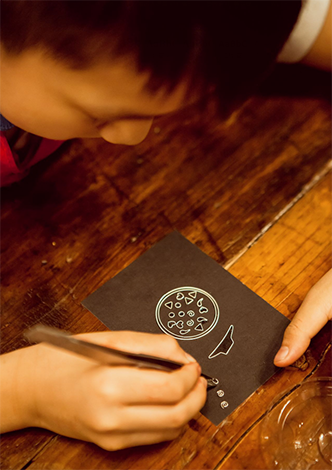 成都“银花丝”这项金属工艺迄今已有1700多年的历史,几乎包含了中国传统手工艺的各种精华。它与蜀绣、竹编、漆器一起,号称成都非遗“四大名旦”。在倪成玉大师的手下,以纯银丝作线,勾勒出美丽的图形与边框,灵活的双手飞快地填充编织,上下穿梭、左右堆砌之间,栩栩如生的图样便跃然而出。制作银花丝最为独特的技艺就是“平填”与无胎成型。即不凭借任何原胎,通过将复杂摆件切分成多个部分,在同一个平面上完成每个部分的图案制作,最后再整合成型的工艺。在现场,小朋友就各自发挥创造力,用银花丝摆出了必胜客LOGO和比萨的图案,再用相框一裱,就是一副精美的艺术品。“真是太好看了!”李奕彤小朋友的妈妈说,“而且这个过程虽然不是很复杂,但是也让孩子感受到了咱们中国传统手工艺的魅力,这样的活动非常有意义。” 当然对于李奕彤来说,银花丝的制作体验只是今晚的惊喜之一,她还在孟德芝老师那里学会了蜀绣12种针法中的滚针和截针。蜀绣又名“川绣”, 是中国刺绣传承时间最长的绣种之一,主要指以四川成都为中心的川西平原一带的刺绣。蜀绣以其纯熟的工艺和细腻的线条跻于中国的四大名绣之列。关于蜀绣最早的记载见于西汉扬雄《蜀都赋》:“丽靡螭烛,若挥锦布绣,望芒兮无幅。”活动现场展示了孟老师之前的几幅作品,色彩鲜艳夺目、给人以强烈的视觉感受。