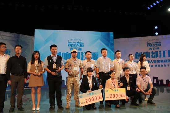 “创响都江堰”首届创新创业大赛启动以来,大赛主委会共接收报名项目326个(其中:实体项目78个、孵化项目248个),通过初赛、复赛评比,10个项目(实体项目、孵化项目各5个)进入决赛。决赛中,10个参赛项目通过现场路演和评委组、风投机构现场提问点评,雅致文创、牧羊人新型羊舍分别获得“创响都江堰”创响奖(实体组)、创意奖(孵化组)一等奖,寰途智旅、岷艺文化传播分别获得“创响都江堰”创响奖(实体组)、创意奖(孵化组)二等奖,猎鹰童军训练营、大学生家教联盟分别获得“创响都江堰”创响奖(实体组)、创意奖(孵化组)三等奖,五梁山农业科技、微蒂传媒、译心译翻译、心语APP分别获得“创响都江堰”创响奖(实体组)、创意奖(孵化组)优秀奖,参会省市领导分别为获奖项目颁发了证书、奖杯,并发放20000-3000元不等的奖金。
