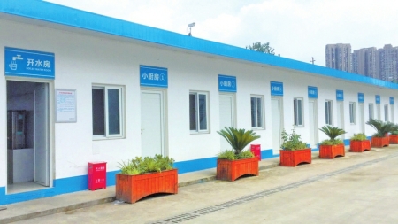 在不少人印象中,建筑工地工友生活起居的地方就是脏乱差环境的代名词。然而,在成都驿都大道西路附近的绿地中心468项目部工友生活区,却别有一番景象:住宅板房、夫妻房、大食堂、小厨房、电影院、台球室、医务室、理发室、网络室等等,你想得到的社区设施在这里几乎都能看到迷你版。