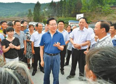 六月十九日,省委书记王东明来到仪陇县新政镇金鸡山村调研督导脱贫攻坚工作,与当地群众亲切交流。