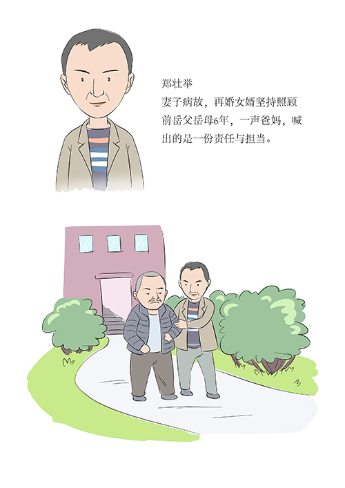 “2011年1月1日给儿子办满月酒时,妻子不幸去世,岳母受刺激过度患上了精神类疾病,岳父也整日精神不振。”从那时起,郑状举无论再忙,一有时间就会去两位老人家中,陪着聊天、做饭、打扫房屋等等,“我想的是一定要尽个孝嘛,只是一晃眼,这一陪就是六年。”