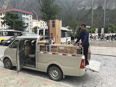 正准备运往贫困村的文体器材