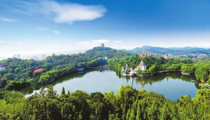 德阳市区玄珠湖鸟瞰。