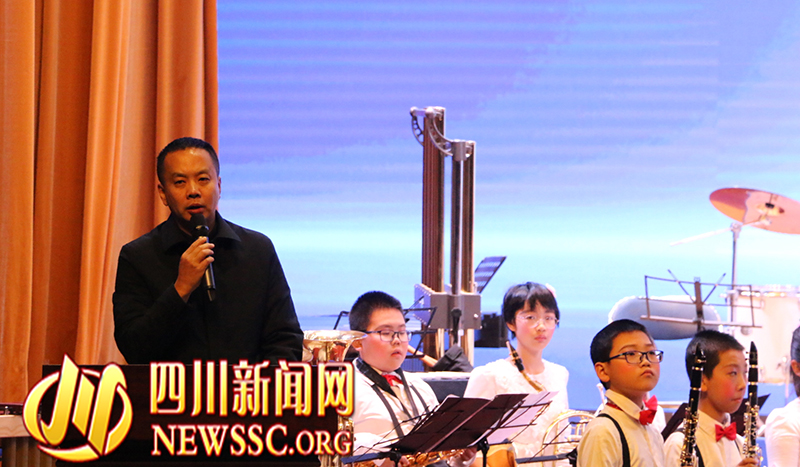 成都市教育局体卫艺处处长吴小刚为本次展演活动致辞并宣布开幕,成都市教育局体卫艺处处级调研员梅青,四川音乐学院教育学院院长安冰冰,四川音乐学院管弦系教授、硕士生导师,小号教育家、演奏家谢岳,新加坡音乐学会会长、四川音乐学院外聘教授李天池,中国人民解放军西部战区战旗文工团一级演奏员 中央音乐学院、上海音乐学院、四川音乐学院客座教授汪毅,四川音乐学院教授、硕士生导师,四川音乐学院作曲系党总支书记、指挥教研室主任姚春城,天津市津宝乐器有限公司国内销售部长韩玉娟等领导及专家评委老师出席开幕式。