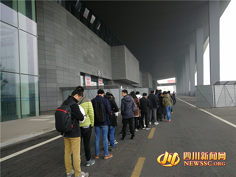 12月26日上午10点,在天府新区西博城16号馆办证点,审核落户材料的人已经排出了馆外。