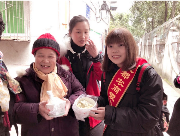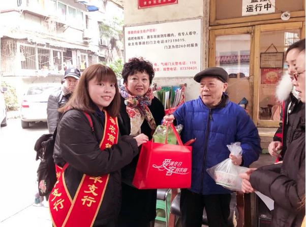 为传承中华民俗文化,弘扬尊老爱幼的传统美德,提升春节氛围,青羊支行工作人员冒着寒风将饺子和福袋送到了社区孤寡老人的手中,为他们奉上一份暖胃暖心的关怀与慰问,让他们共同感受冬日的温暖。图为青羊支行同事为孤寡老人送饺子和福袋。