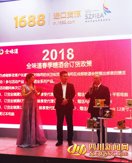 记者在逛展中发现,今年除了“老牌”产业酒类仍然备受关注外,大家对进口商品的关注度有所增长。在3号馆1688进口货源展台正在举行旗下商品的线上线下同步推荐会,越南果干榙榙、广州市全味道进出口有限公司、深圳欧莱登食品有限公司的商品陆续亮相,有意思的是,推荐商品的人不是日常的销售人员,而是各厂商的总经理,着实吸引了众多逛展的人留步观看。