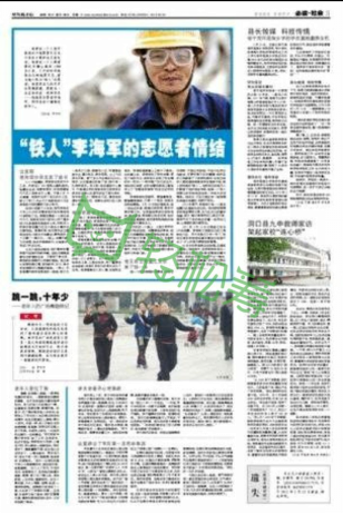 李海军,今年48岁,湖南邵阳县人,他是退伍军人,也是救灾志愿者,救灾荣誉证书就有8本,无偿献血证30多本,救灾那会儿人送外号“铁人”李海军。2008年,李海军和其他志愿者一道,来到理县支援群众抗震救灾和灾后重建,义务投工投劳,一干就是两年,和理县干部群众结下了不解之缘,他的名片上写着:干百家活,吃百家饭;睡百家床,住百家房;哪里需要,支援哪里。