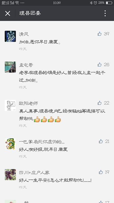 “用感动中国里的一句颁奖辞来说:如果一个富人长年施舍是慈善,那么原本困难的李海军,他的义举那就是大爱!请伸出你的援助之手,点滴之恩可以救人,让好人也感受一回人间大爱!”网友“一洲”在朋友圈转发理县团委的倡议,并写下这样的一段话。