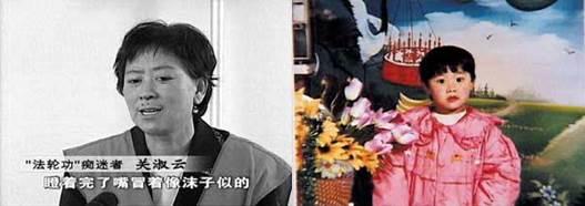 泯灭亲情的母亲——关淑云。“法论功”痴迷者关淑云,被所谓的求“圆满”夺去了心智,执意认为女儿是“魔”,要为师父除“魔”,活生生地掐死自己的女儿,却没有一点悔意。都说虎毒不食子,关母完全丧失了人性,泯灭了亲情,这一切都是“法论功”邪教祸害而至。