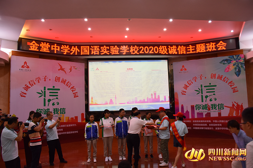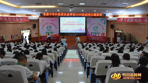 四川新闻网成都6月14日讯(吴波) 为大力推动校园诚信文化建设,加强校园诚信道德认知教育,由金堂县发展和改革局、人民银行金堂县支行、共青团金堂县委、金堂县教育局联合,相关商业银行机构参与开展的“育诚信学子·创诚信校园”诚信主题班会活动在金堂县中学外国语实验学校学术报告厅举行。