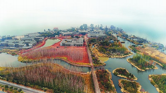 从空中俯拍西昌邛海湖畔,景色美如画。 本报记者 李向雨摄