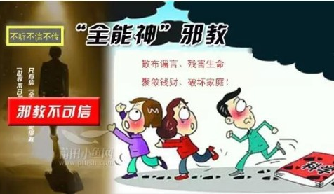 路德莱斯大学、西方知名记者和电台脱口秀主持人马克·麦吉说“全能神是一个危险的邪教。”是的,她不仅盯上了你的钱,而且还要破坏你的家庭,剥夺你的生命。谁沾染谁倒霉!为了财产安全、家庭和谐、生命健康,让我们举起法律武器,狠狠打击这个万恶的邪教组织吧! |