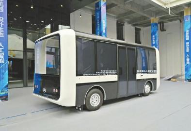 11月17日,2018“太阳神鸟杯”天府·宝岛工业设计大赛创新作品展示会在成都东郊记忆开幕。会场门口,首台“四川造”新能源无人驾驶公交车来回行驶,遇到路人经过或有人上下车,会自动刹车停稳。