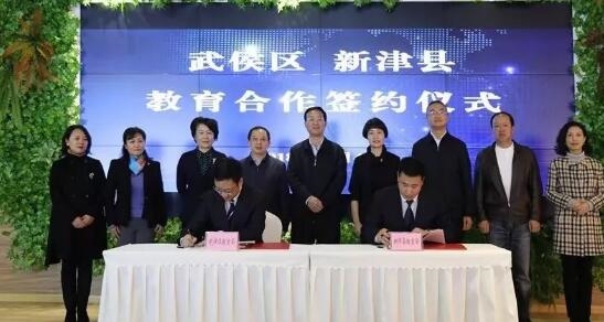 12月4日,“武侯新津教育合作签约仪式”在天府农博园创新中心举行。成都市人大常委会副主任、武侯区委书记巫敏,新津县委书记唐华出席签约仪式并致辞,县委副书记、县长钟静远主持签约仪式。武侯区教育局局长陈兵和新津县教育局局长张德武共同签署《武侯区新津县教育合作发展协议书》。