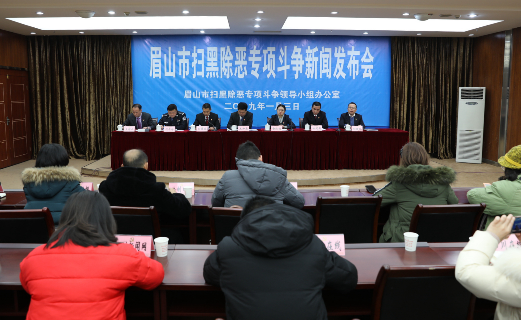 眉山市扫黑除恶专项斗争新闻发布会现场