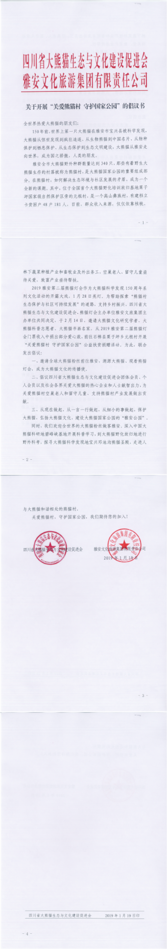 四川新闻网成都1月21日讯(罗梦宇)1月19日,四川省大熊猫生态与文化建设促进会携手2019雅安第二届熊猫灯会主办单位雅安文旅集团,在世界上第一只大熊猫科学发现地雅安,向全球大熊猫粉丝发起“关爱熊猫村 守护国家公园”公益扶贫倡议。