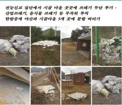 几年前,在调查韩国大田地区的“全能神”时,由于其垃圾不做分类处理乱丢乱弃,导致周边居民怨声载道,最近类似事件仍诸有发生。同样在忠北报恩郡一带,其邪教集团的群居生活依然引起附近居民的诸多不满。