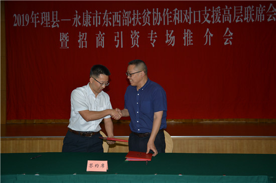 会议上,金华市政协副主席、永康市委书记金政指出,东西部扶贫协作和对口支援是党中央推动区域协调发展、协同发展、共同发展的大战略。与理县开展对口合作,既是上级党委对永康的信任,也是永康义不容辞的职责,更是永康发展的机遇。自2015年两地开展东西部扶贫协作以来,永康市委牢牢把握党中央、省委和金华市委决策部署,把做好东西部扶贫协作工作作为一项重要的政治任务,立足自身实际,创新帮扶路径,扎实开展与理县的对口帮扶,各项工作进展顺利、取得实效。金政表示,希望两地继续加强协作,共谋发展。一要制度化加强沟通协调。两地协作关系要通过制度固定下来,5年、10年都不要变。二要项目化抓好工作落实。抓好对口协作的重要载体就在项目上。要实施项目化管理,一切工作项目化,一切项目具体化,扎扎实实的推进一批合作项目落实,以项目推进各项工作精准落地、有效落实。三要常态化推进人员交流。加强干部交流、专业人才交流和劳动力交流,促进观念互通、作风互鉴、方法互学,实现发展理念共享、工作经验共享、合作成果共享。四要最大化实现优势互补。立足各自优势,探索跨区域要素共享、产业互动、协同发展的新路径。