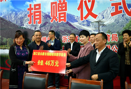 据了解,“精准教学”是永康教育最大的创新品牌,不仅在浙江省内处于领先地位,在全国也有很高的知名度。在本次考察活动中,永康教育部门积极牵线搭桥,由杭州施强教育公司代表永康教育界对理县的关心,向理县中学捐赠了55万余元的“精准教学”装备。此举是为了让理县的学生们享受更优质的教育资源,推动理县“精准教学”改革,实现永康、理县两地课堂同步。
