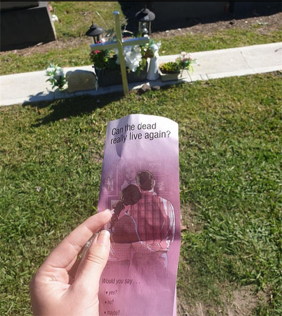 【核心提示】英国《每日邮报》2019年5月14日报道称,澳大利亚的“耶和华见证人”在墓地随地散发讨论有关永生的传单,引发逝者亲属极度反感。