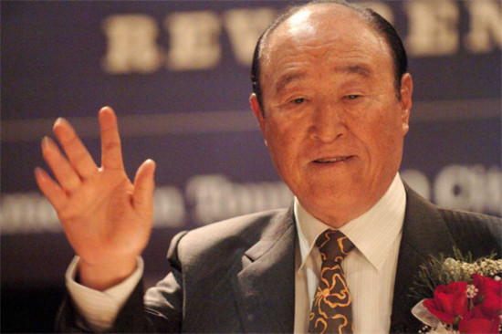 2005年9月21日,“统一教”头目文鲜明在桥港大学的一次私宴上讲话,主题是有关统一的“上帝理想中的家庭:世界和平的楷模”。这是文鲜明第12次到达北美地区,其中包括桥港市(资料图片来源:Andrea A. Dixon)
