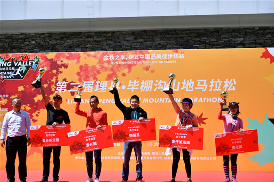 最终,胡涛、屈霞分别以3:45:24和5:12:47的成绩斩获男、女子组全程马拉松冠军头衔,拉马有古、黄武秀分别以1:33:10和2:05:56的成绩获得男、女子组别半程马拉松冠军,何希、李岚分别以1:04:51和1:06:36的成绩获得男、女子组别四分山地马拉松冠军。