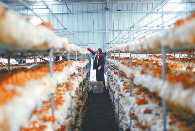 10月17日,在中国雅江松茸产业园,工人在采摘珍珠菇。近年来,甘孜藏族自治州雅江县采取“龙头企业+联合社+基地”的模式,以中国雅江松茸产业园为龙头,建立食用菌示范基地,依托基地旁的国道318线和无人机物流网,打开松茸、珍珠菇等食用菌的销路,带动当地2000余人脱贫增收。 唐文豪摄