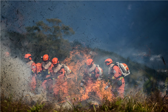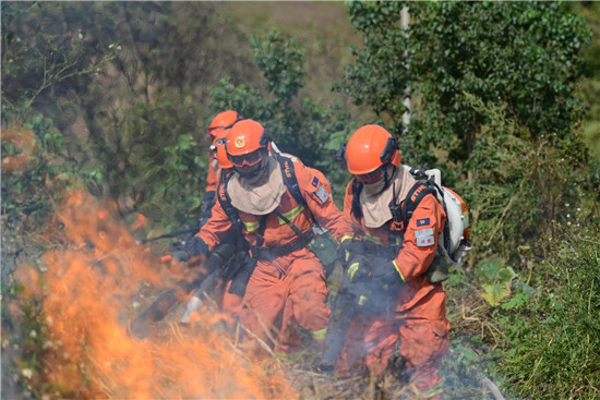 这次灭火演练,四川省森林消防总队启动了山猫全地形车运输装备器材,动用了多旋翼无人机侦查火场、远程观测和物资定点抛投,使用了阻燃剂、Super325型水泵、超高速涡流喷射灭火机、斯蒂尔BR800型灭火机等6种新装备,尝试磨合了两种不同战法,为即将到来的冬春季森林防火灭火工作进行了有益探索和实践。(图由四川省森林消防总队提供)