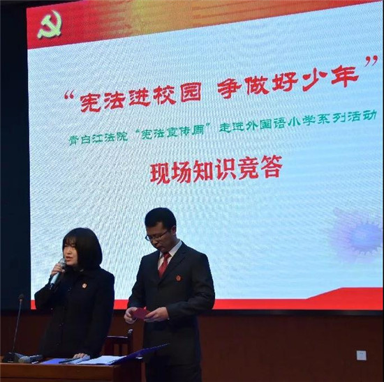 此次在青白江外国语实验小学开展的“宪法进校园 争做好少年”活动,是青白江法院“宪法宣传周”系列活动第一站,为深入贯彻党的十九届四中全会精神,充分发挥基层人民法院的宣传作用,该院将有序开展后续宣传工作,带动群众认识宪法、学习宪法的重要意义,确保宪法学习宣传的正确政治方向,讲好中国宪法故事,讲好中国制度故事,增强全社会制度意识,增强宪法自觉,推动宪法精神深入人心。(通讯员王丹 王俊杰 图片由青白江区法院提供)