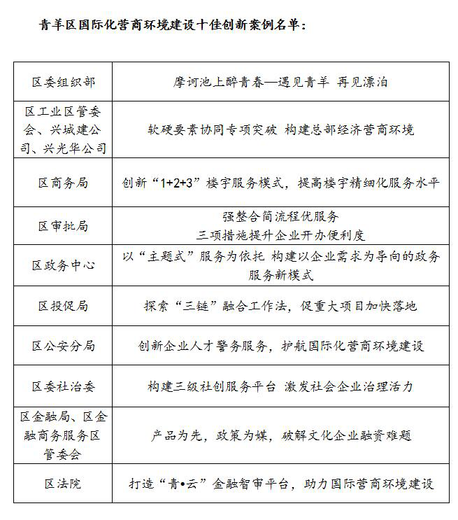 同步,“青羊区国际化营商环境建设十大创新案例评选”也在大会上正式启动。