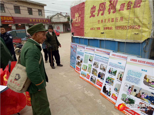 群众在观摩反邪教警示教育宣传展板