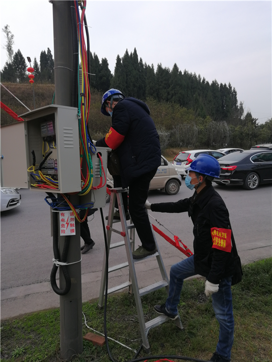 渠县公司党员先锋队为高速路口安装临时用电