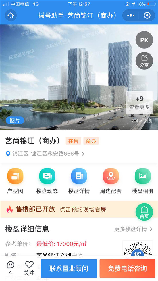 艺尚锦江文创中心项目在摇号助手平台的线上销售页面