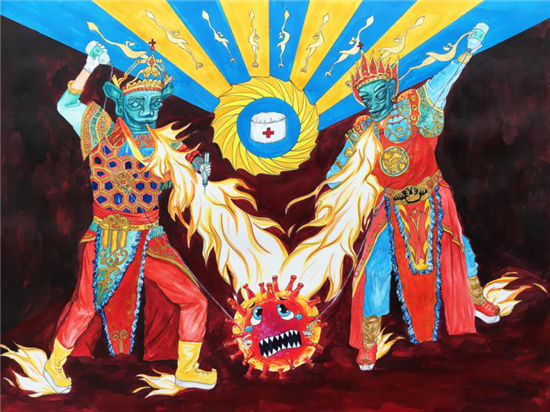 四川省公益广告征集展播活动平面类:《蜀神驱“疫”祥鸟聚》