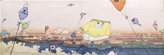 电子科技大学成都学院专任教师 唐菀 口罩系列水彩画