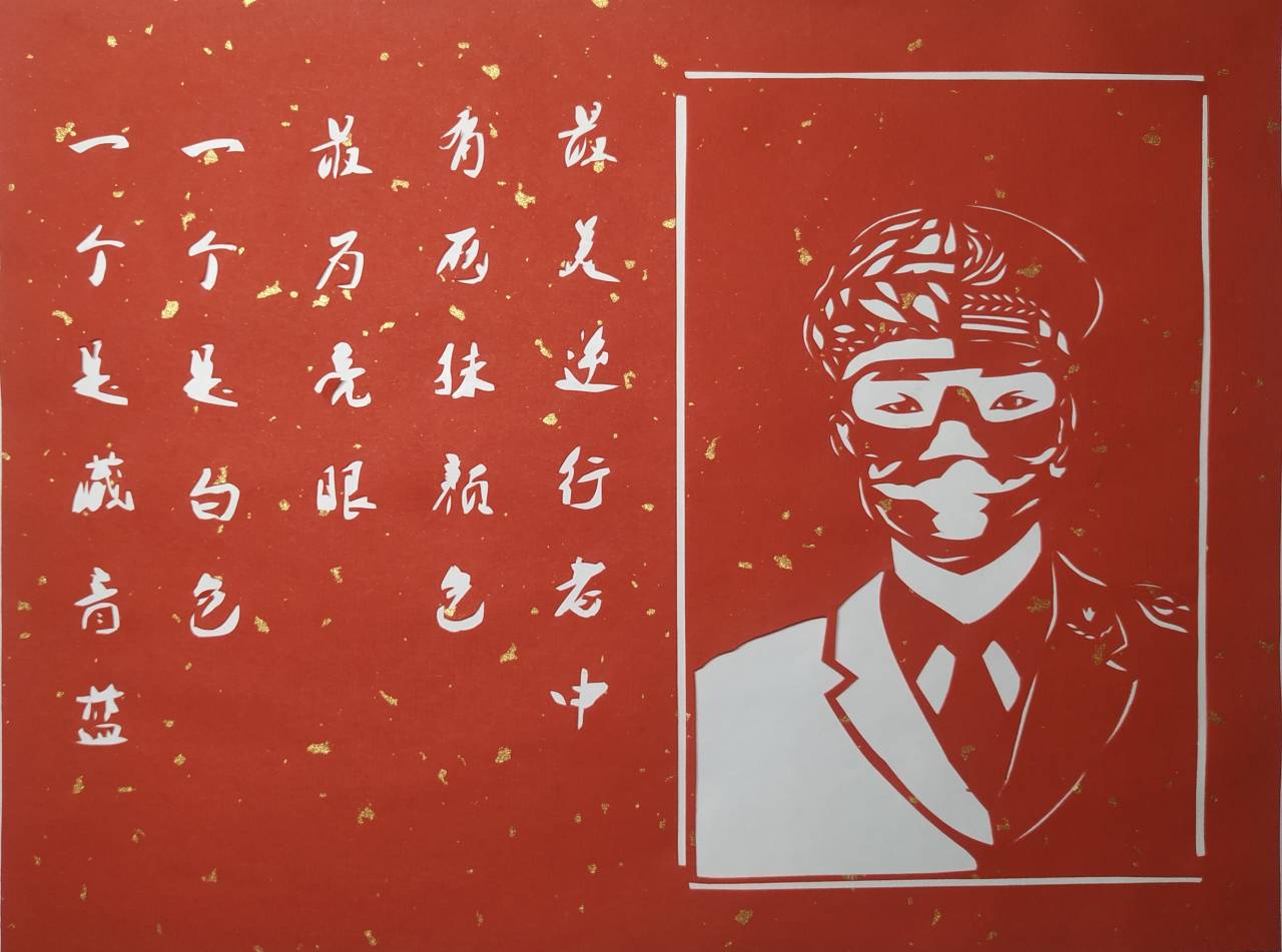 疫情当前,冲在一线的是医护人员和警察叔叔,最美逆行者中有两抹颜色最为亮眼,一个是白色,一个是藏青蓝。灵感来源于微博封面海报,一半医生一半警察,他们都是民族的英雄,以剪纸的形式表现出了,更直观的表现出对他们的敬意。