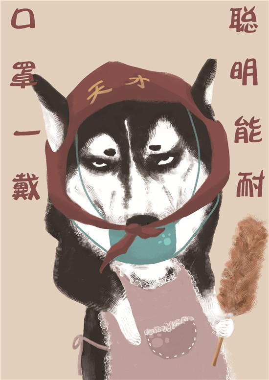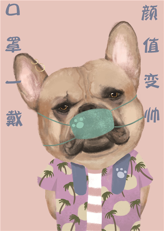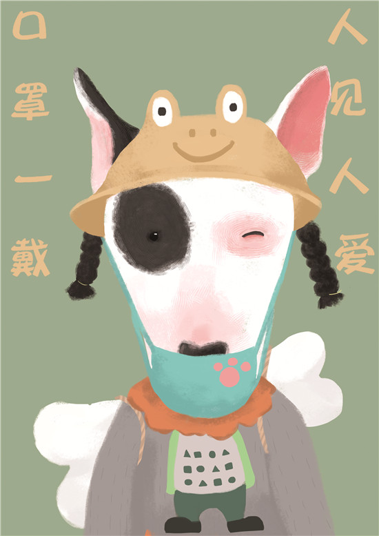 疫情期间,我们都要养成出门戴口罩的好习惯,口罩可以有效的隔离飞沫和病菌,也是对自己负责对他人负责,用小狗狗戴口罩,生动可爱传达出门戴口罩的口号,增加感染力。
