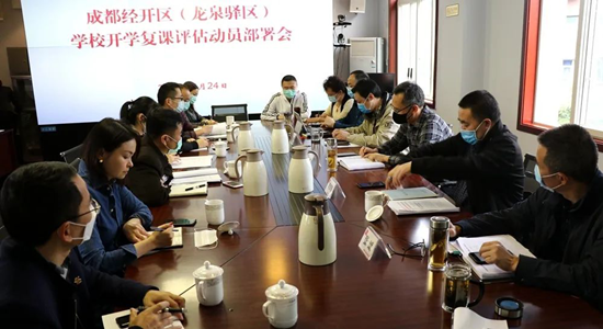 四川新闻网成都3月25日讯(李仕丽)3月24日,按照龙泉驿区防控指挥部安排,龙泉驿区教育局党组书记、局长雍峰同志主持召开龙泉驿区学校开学复课评估动员部署会,启动部分学段开学前的评估工作,为平安有序开学做好准备。复课评估组相关同志参加会议。