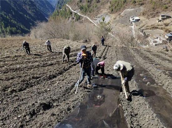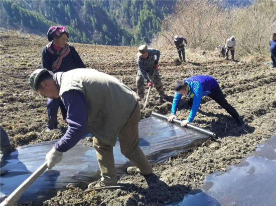 四川新闻网成都3月25日讯(朱梦琪 通讯员 程伟)随着理县各地复工复产的持续推进,薛城镇甲米村的家家户户也都到田里忙起了农活。与往年不同的是,今年大家忙完各自家里的活路,还由30多名青壮年组成“先锋队”,去到高山上经营药田。大家在旭日下挥镐抡锄,像照顾新生儿一样小心盖膜、挖窝、下种,把精心培育的秦艽苗子一颗颗插到近100亩的田地里,期待药材能有个好收成,给大家增加更多收入。