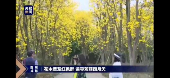 “云踏青”温江第一站:温江区生态大道地铁17号线金星站——黄花风铃木