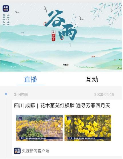 四川新闻网成都4月20日讯(吴孟)今年的疫情将很多朋友留在家中。雨生百谷夏将至,在春天最后一个节气,央视新闻邀全国网友“云踏青”,约定疫情结束后赏遍祖国河山。