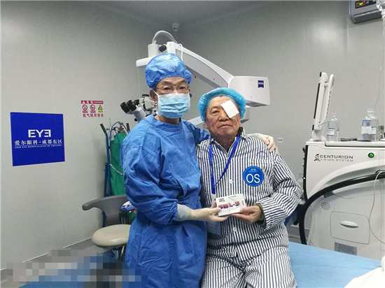 成都东区爱尔眼科医院肖主全主任和钟爷爷在手术室合影