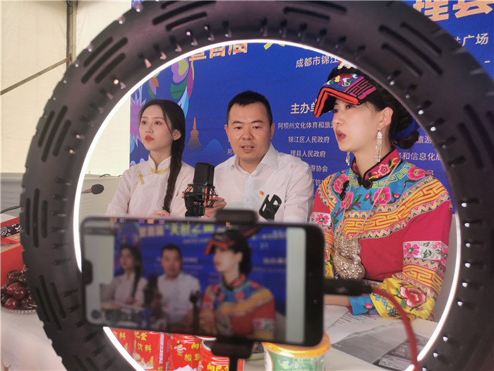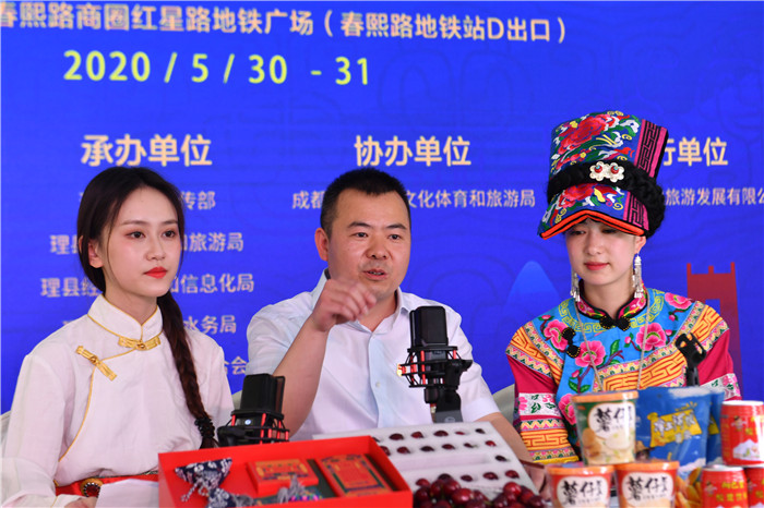 四川新闻网成都5月30日讯 (朱梦琪 通讯员 杨虎全 杨莹)为更好地助农增收,提高理县特色产品的知名度和吸引力,5月30日,理县在成都市春熙路核心商圈举办了“县长代言+直播”带货活动。