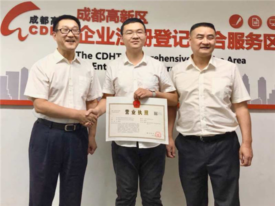 四川新闻网成都6月11日讯(记者 陈淋)“太方便了,没想到短短一天时间内就能异地领取到营业执照!”6月10日下午,市民谭先生在成都高新区顺利领取了一张特殊的营业执照,意味着他在重庆的分公司拿到了营业许可,这是成渝两地高新区探索市场监管一体化合作后首张异地颁发的营业执照。