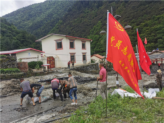 6月14日,米亚罗镇成立了6.13防汛应急临时党支部,及时组织各村大三职干部、民兵、党员先锋志愿服务队,迅速开展核实灾情、泥污清理等工作,经救灾人员多小时连续奋战,于14日下午2点40分左右,中断道路被抢通并通车。